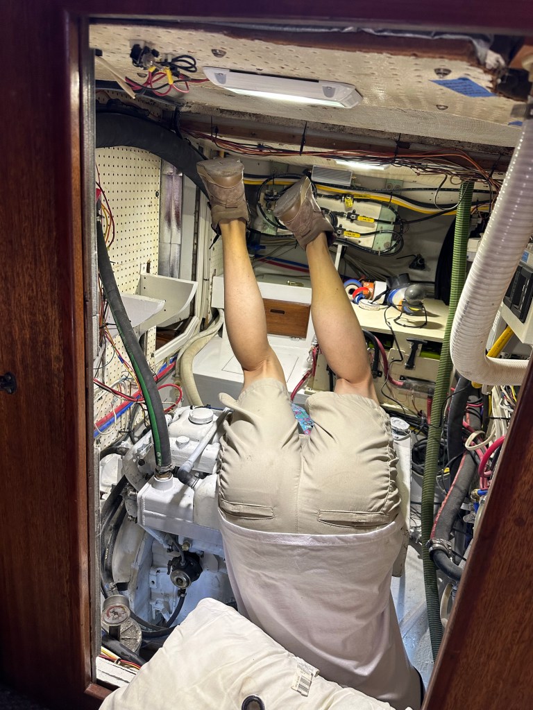 Some boating friends have asked to see the list of everything we’ve worked on in the yard… and that particular list will take a long time to compile if we are ever willing to revisit that era. But this short list that follows is from a 24-48 hour period. Some felt catastrophic in the moment, others were just really annoying because we always feel tight on time.